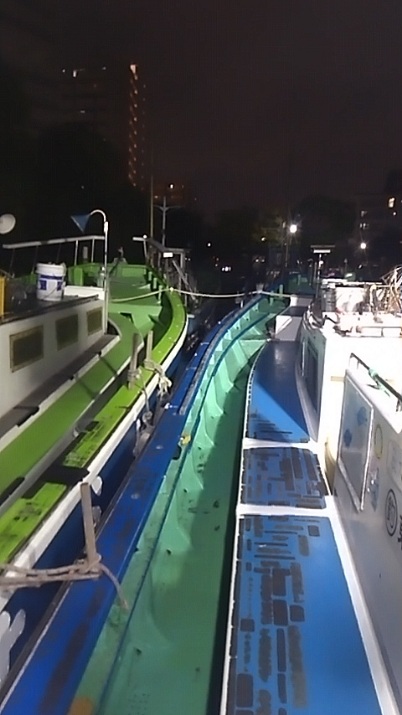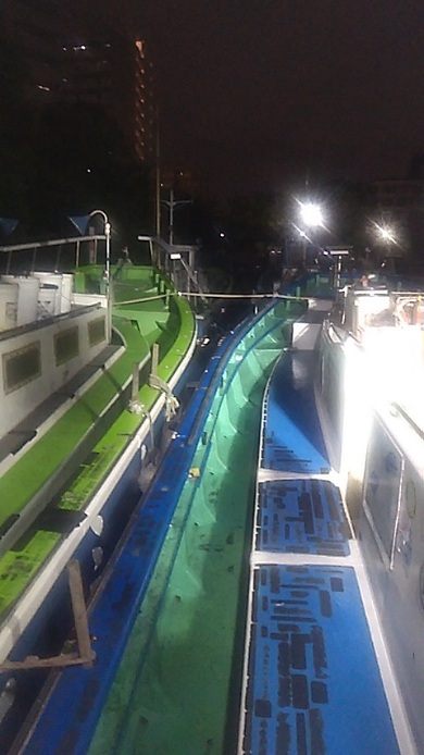 早めに来た方から桟橋の入り口の釣り座ボードに記入して‥船に‥