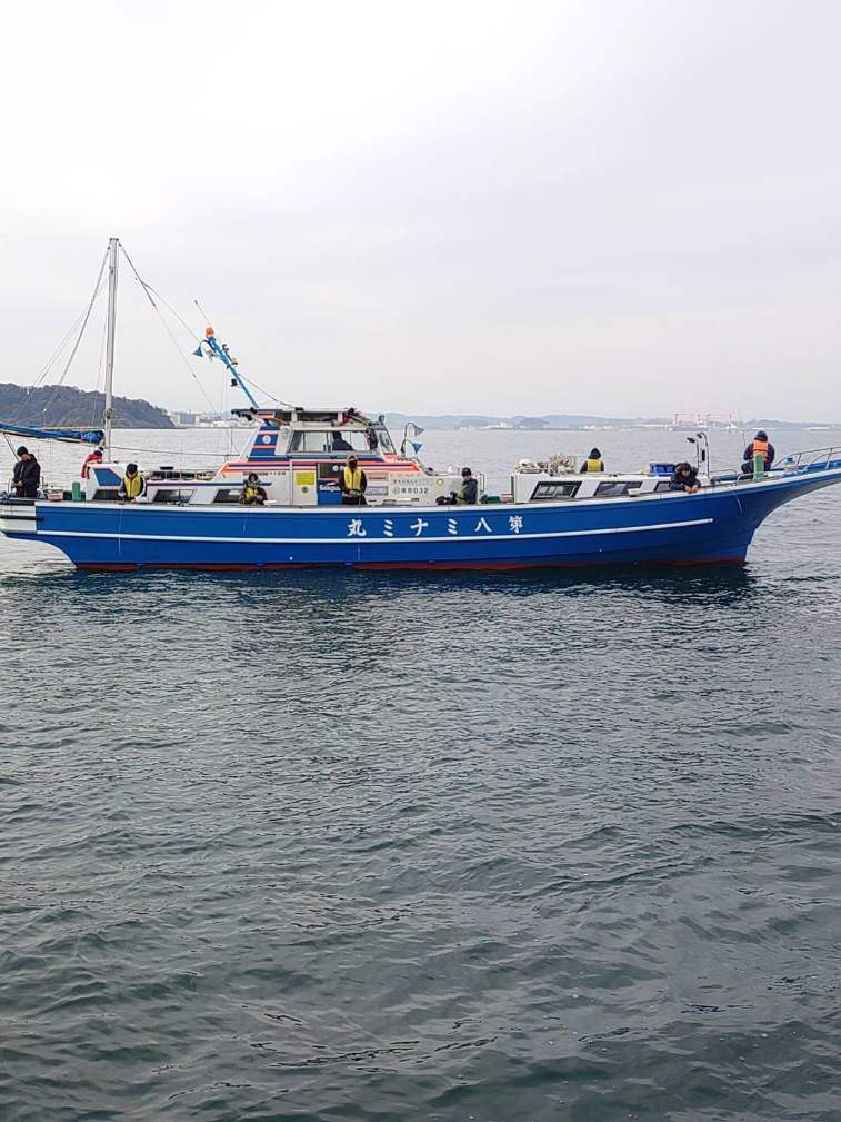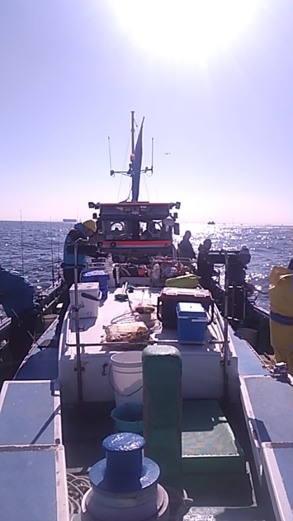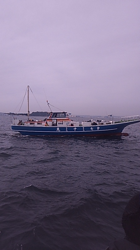 猿島沖の船団まわりの水深は60m前後,アタリだなは下から3ー8mぐらいで‥タイミングが.合った方は.ポッン.と(^o^).ゲット‥