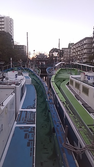 ‥船が.水門の中に.ある時は.そのまま船に‥竿や荷物などで‥場所取りを‥