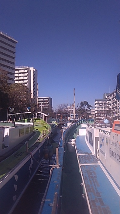‥船が.水門の中に.ある時は.そのまま船に‥竿や荷物などで‥場所取りを‥